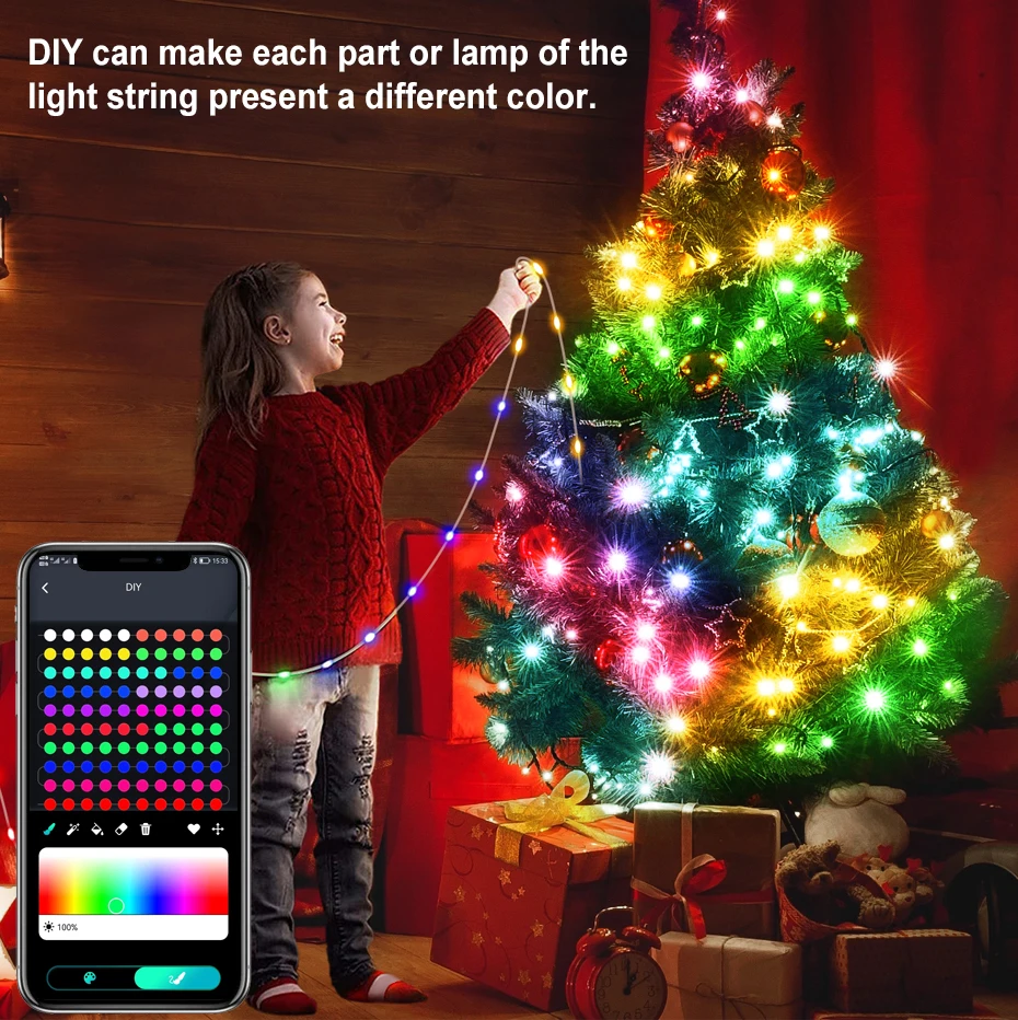 Transform your home, garden, or party space with these USB-powered Smart LED Fairy String Lights. With Bluetooth app and IR remote control, you can change colors, adjust brightness, and even sync lights to music for a fully programmable, magical lighting experience.