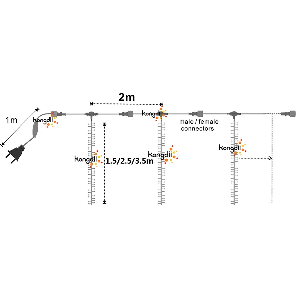 Made with durable materials and low-power LEDs, it is suitable for both indoor and outdoor use and can be connected in series up to 10 strings for spectacular installations.