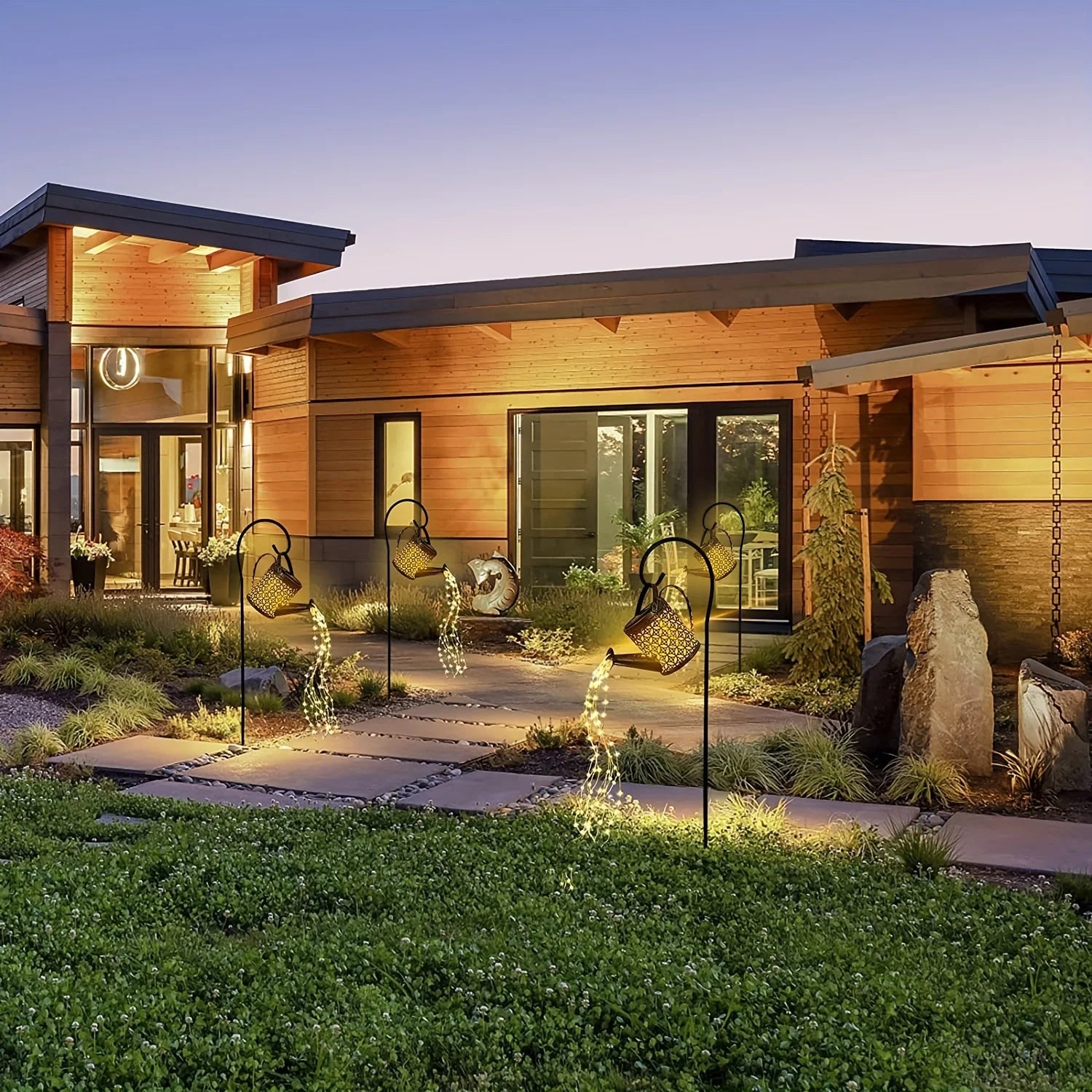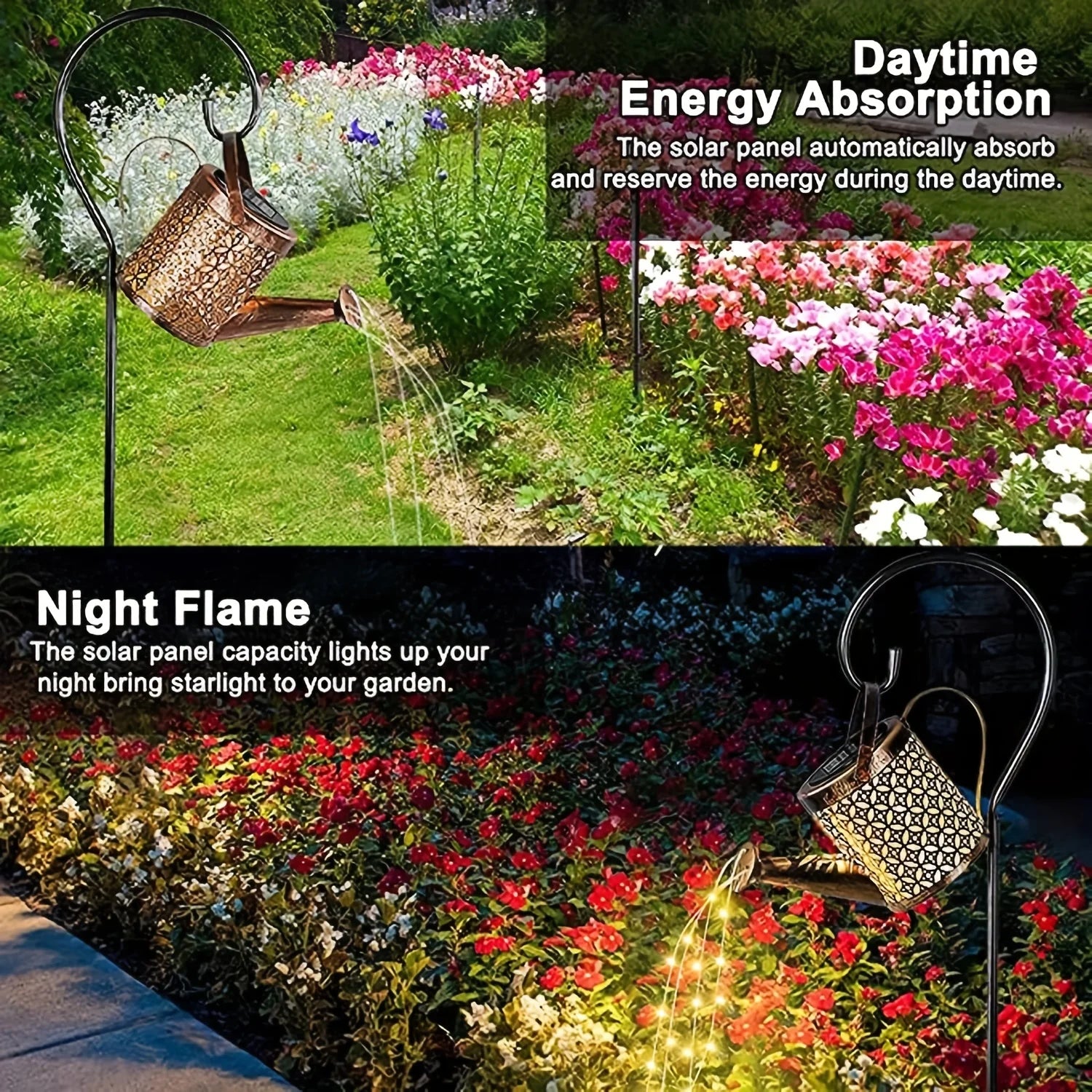 Questa lampada a forma di annaffiatoio solare proietta un suggestivo effetto di stelle grazie ai fili LED integrati. Resistente alle intemperie (IP65) e realizzata in ferro di alta qualità, funziona senza fili: si ricarica di giorno e si accende automaticamente di notte, creando un’atmosfera unica su patio, vialetti e balconi.