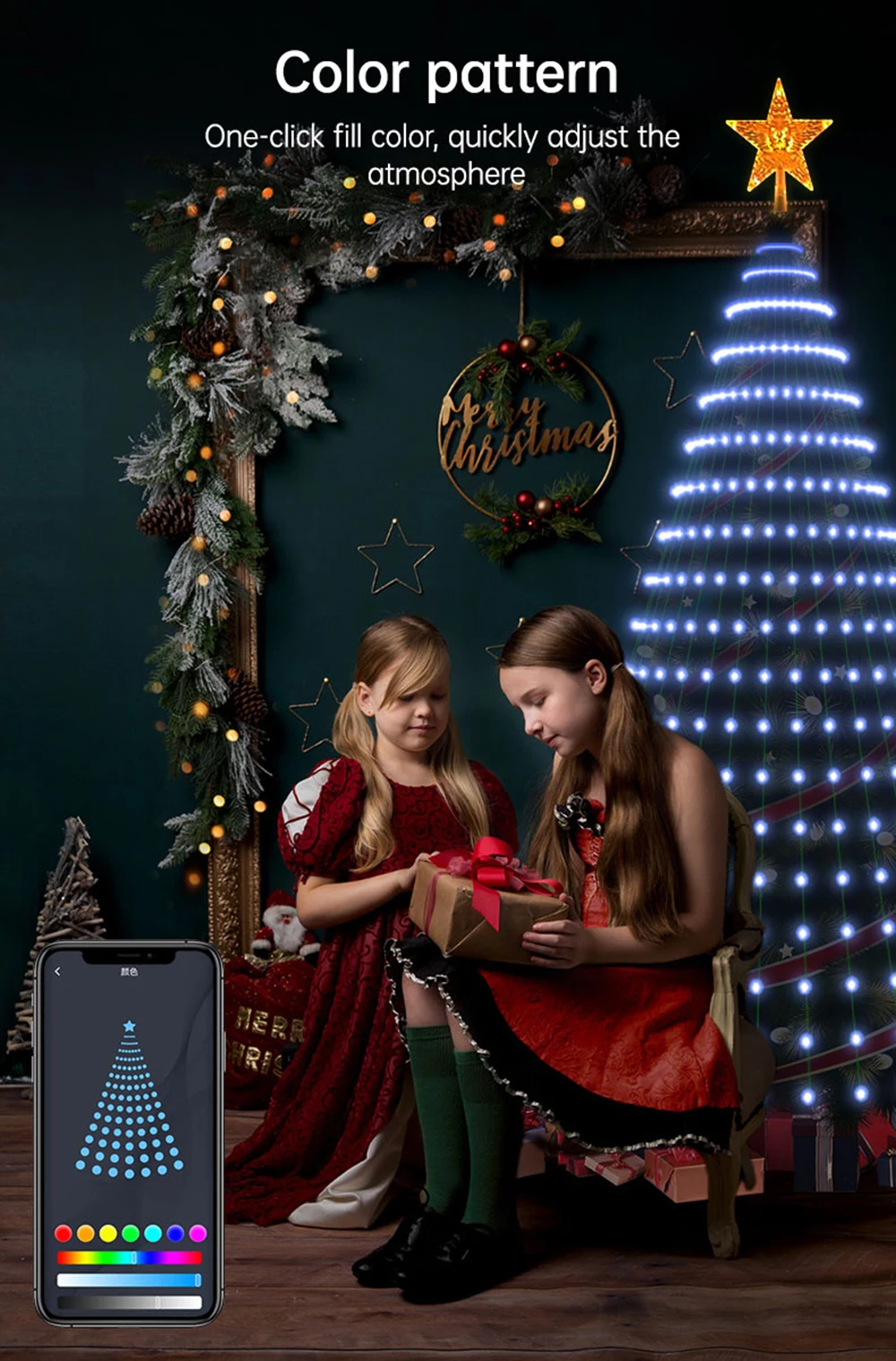 Transform your Christmas into a magical celebration with Smart LED Christmas Tree Lights! With 400 RGB LEDs and Bluetooth APP control, you can change colors, modes, and light rhythms directly from your smartphone. Perfect for Christmas trees up to 1.8 meters tall, these lights are suitable for both indoor and outdoor decorations, featuring a durable green wire with IP65 waterproof rating. Compatible with iOS and Android devices, they also include a timer function and remote control. Create festive atmospheres, customize light scenes, and bring joy and color to your holidays!